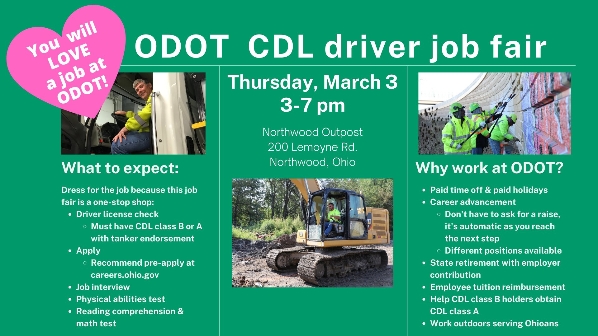 Reminder Odot Hiring Full Time Cdl Drivers And Mechanic Ohio Department Of Transportation
